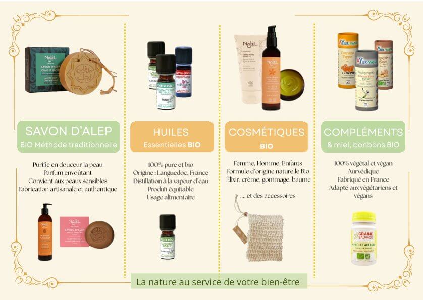 Orient-Relais vend des produits cosmétiques BIO, orientaux comme les fameux savons d’Alep.